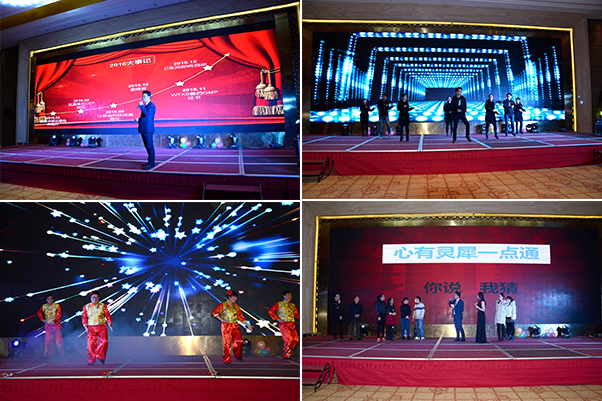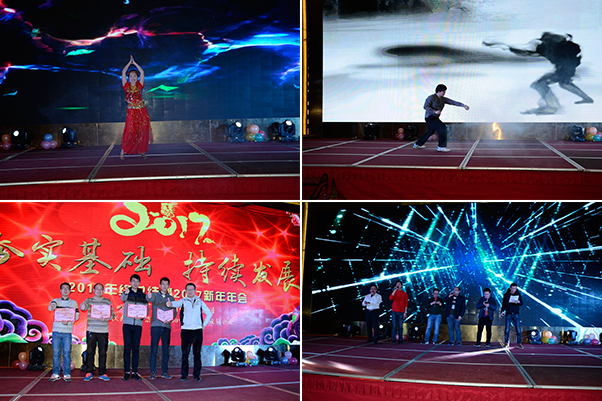 此次年會(huì)在一段動(dòng)感熱辣的舞蹈秀中拉開(kāi)帷幕,中間穿插的幸運(yùn)抽獎(jiǎng)及搶紅包的環(huán)節(jié)更是將晚會(huì)推向一個(gè)又一個(gè)高潮。公司年會(huì)不僅給大家?guī)?lái)了歡聲笑語(yǔ),同時(shí)也讓同事之間彼此的心更加貼近。公司領(lǐng)導(dǎo)與員工親情互動(dòng)、激動(dòng)人心的抽獎(jiǎng)活動(dòng)、精彩紛呈的舞蹈、魔術(shù)、唱歌、小品、武術(shù)、互動(dòng)游戲等,讓歌聲、掌聲、歡呼聲在會(huì)場(chǎng)上空久久回蕩。整場(chǎng)晚會(huì)高潮迭起,呈現(xiàn)出?;圻@個(gè)大家庭的歡樂(lè)與和諧。