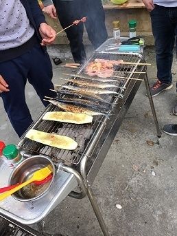 周末時間到了,大家提前購買了燒烤的食物、調(diào)料、飲料等。看到這么些好吃的東西,大家都迫不及待地開始洗菜、穿肉串、玉米……,有搬爐子的,有擺桌子的。爐子上擺滿了要烤的肉、海鮮,滋滋冒著香味,負責燒烤的同事簡直成了大廚,從爐子這頭到那頭,一邊忙著給肉翻面,防止烤糊,還要撒調(diào)料、刷醬。